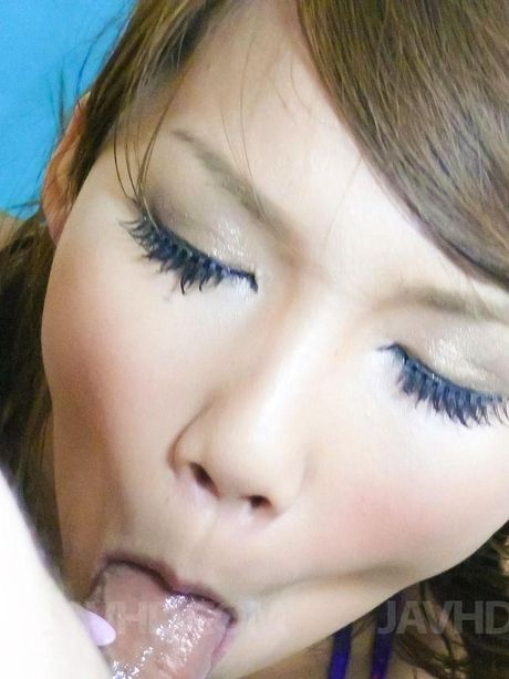 Jav HD: Akiho Nishimura Asian in blue bath suit strokes and sucks penis