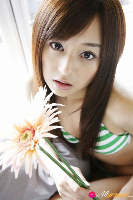 All Gravure: Alluring asian babe taunts in her green and white bikini
