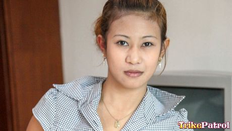 Trike Patrol: Amateur Asian babe Shane strips and shows her hairy pussy up close