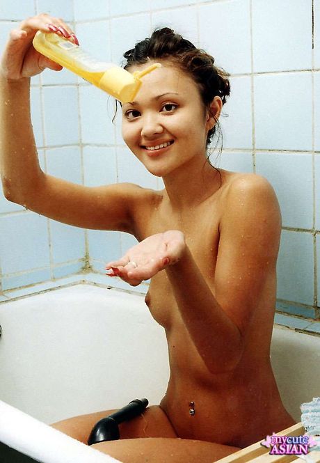 My Cute Asian: Amateur Asian girl toying her pussy with a dildo in the shower
