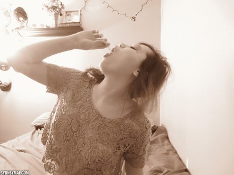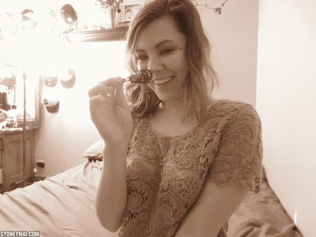 Pink Velvet Vault: Amateur Asian Sydney Mai shows her tiny tits and toys her pussy in a solo