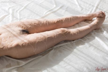 Legs Japan: Amazing Japanese babe Shino Aoi oils up her tiny tits and ass before masturbation