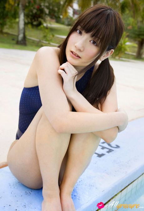 All Gravure: Anna Nakagawa Asian touches pussy in bath suit of the pool bars