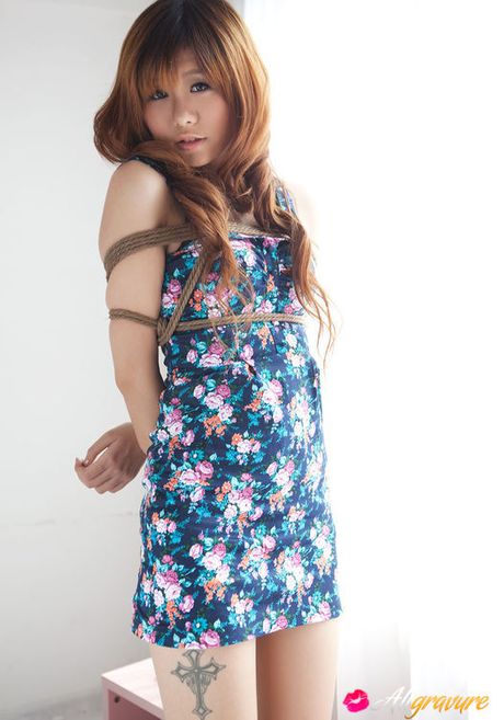 All Gravure: Apple Asian doll in cute dress and heels has hands tied in ropes