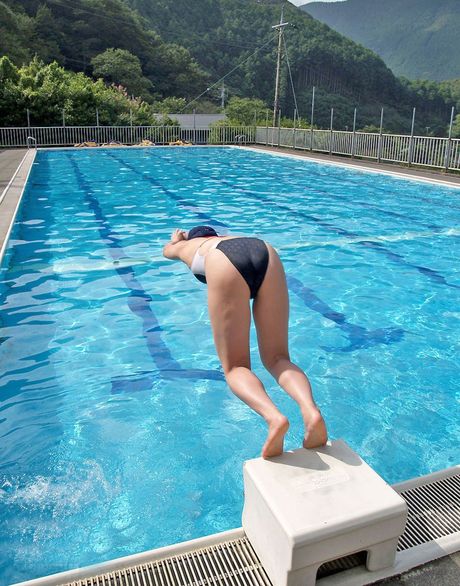 Japan Swimsuit Porn: Asian amateur babe with small tits strips and displays her body in a solo