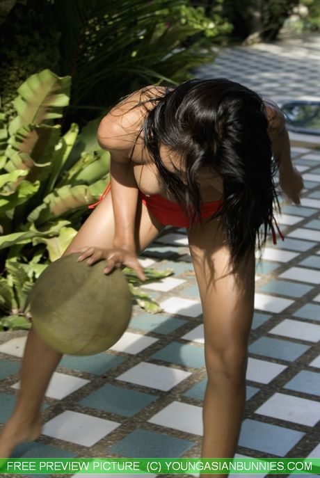 Hot Bunny Promotion: Asian babe Rowena displays her hot butt and tits in a hot bikini outdoors