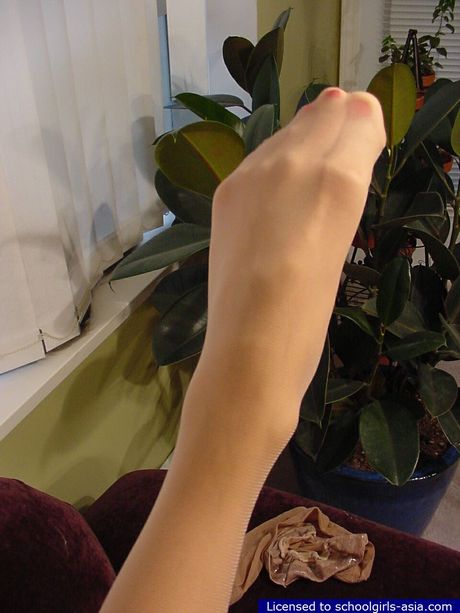 Schoolgirls Asia: Asian girl in stockings spreading wide to flash her inviting opened vagina