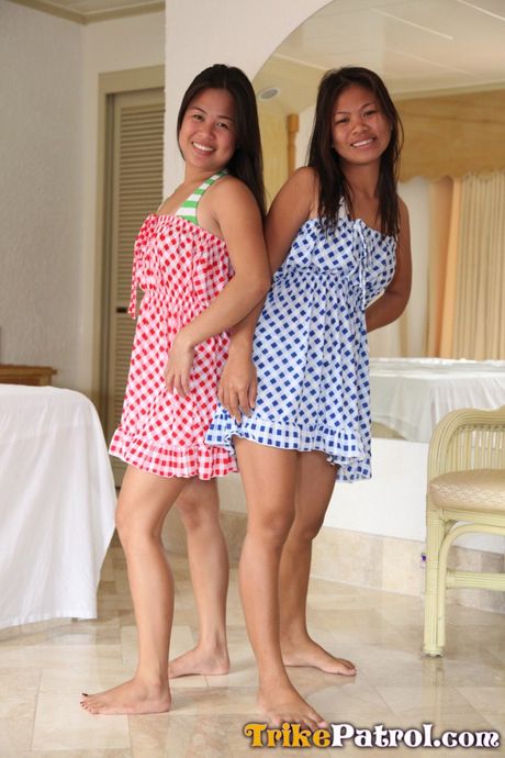 Trike Patrol: Asian lesbians Nicole and Anne playing each others hairy cunts