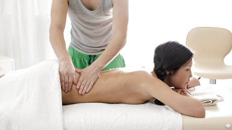 Soapy Massage: Asian masseuse Gianna strips and shows her tiny tits and pussy