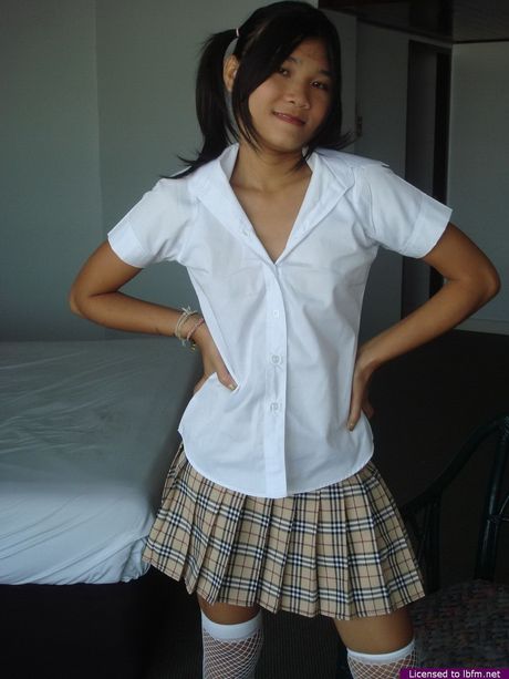 Barfine2cash: Asian schoolgirl with tiny tits strips off and unveils her pussy up close