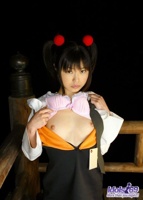 Idols 69: Asian slut in pigtails and uniform shows her hairy pussy and her favorite toys