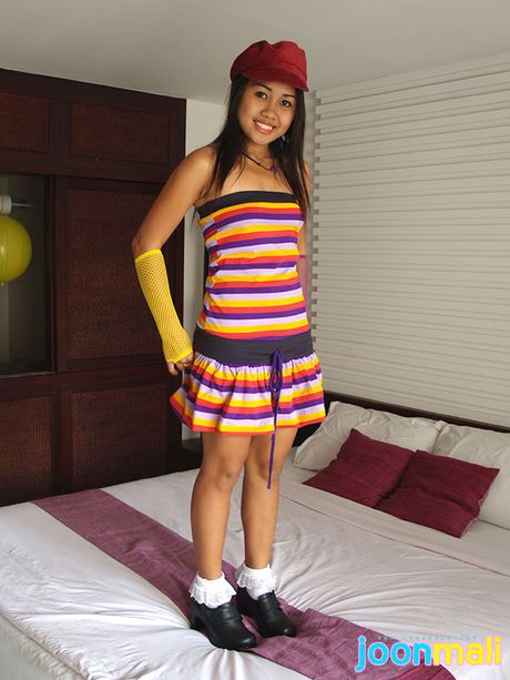 Joon Mali: Asian tease Joon Mali shows white panties and tiny titties