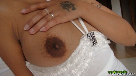 Club Leather Restrained: Asian teen amateur girl shows her tiny tits and pierced nipples in a solo