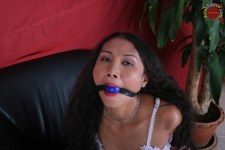 Asian Tied Up: Asian teen amateur girl strips and shows her hot feet and pussy