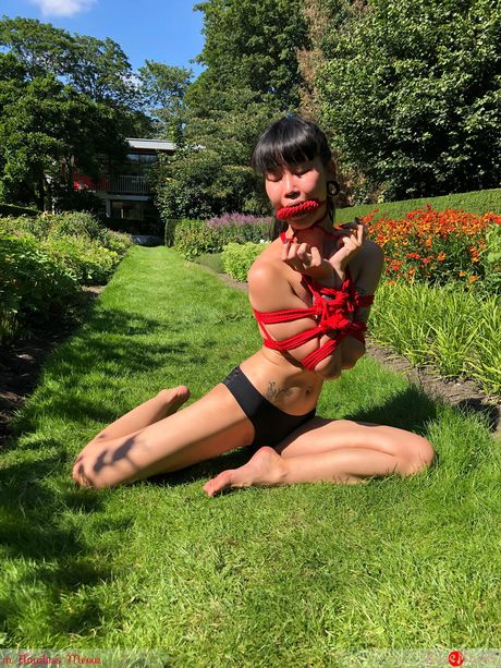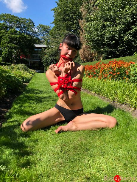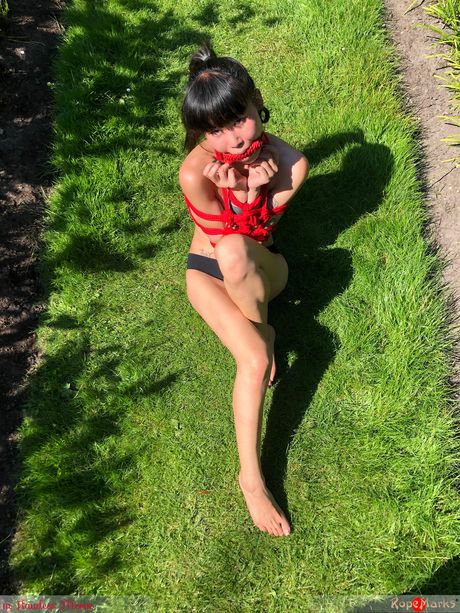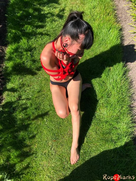 clubropemarks: Asian teen amateur girl strips and shows her skinny body in the backyard