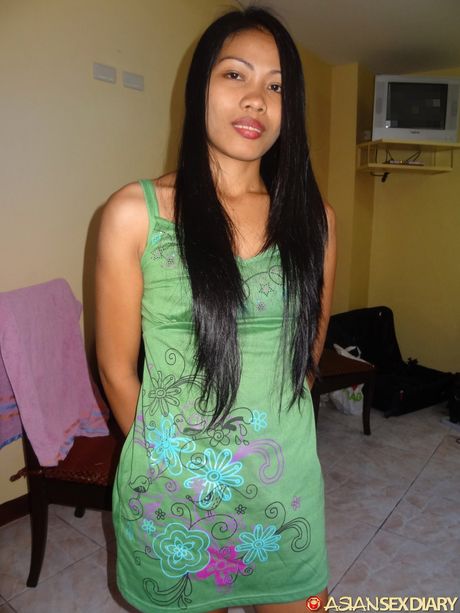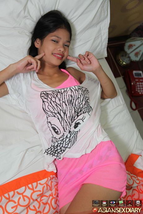 Asian Sex Diary: Asian teen Anabel strips and shows her tiny tits and ass in a solo
