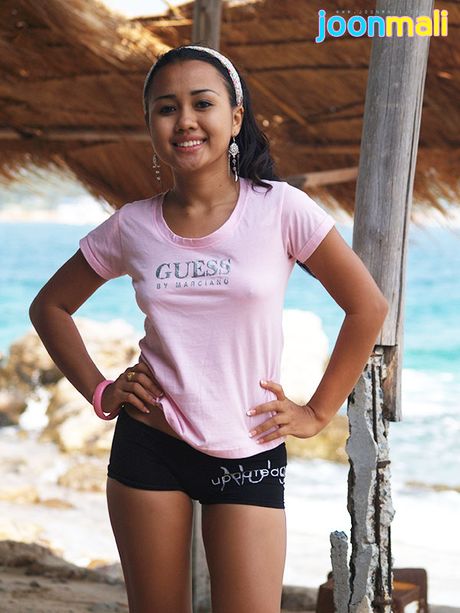 Joon Mali: Asian teen flashes small A cup boobs in tight black shorts