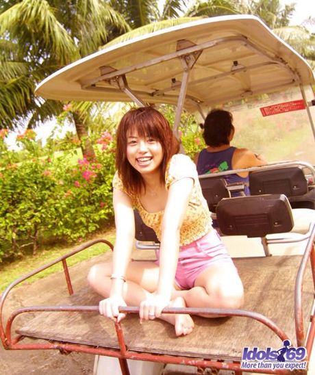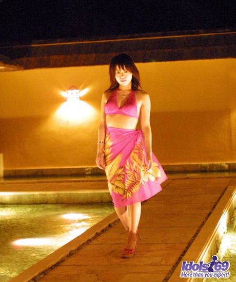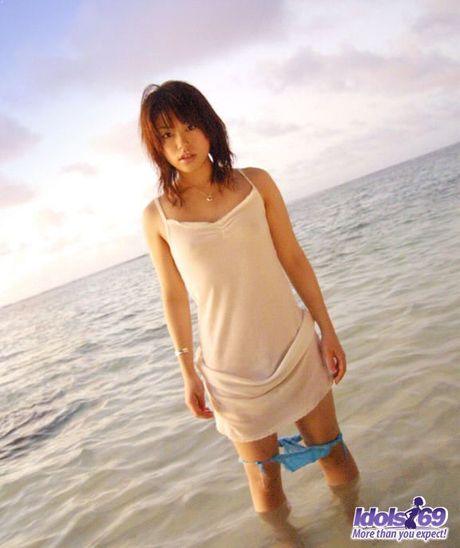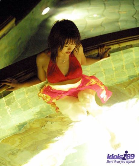 Idols 69: Asian teen Hitomi strips and shows her tiny tits and pink pussy