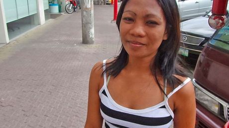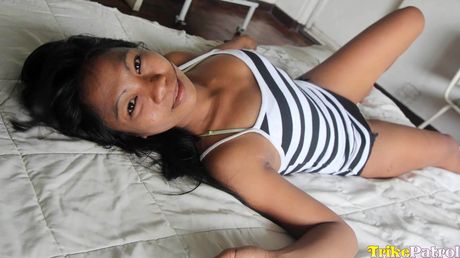 Trike Patrol: Asian teen Jacki strips and shows her hairy pussy up close
