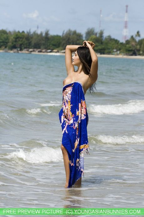 Hot Bunny Promotion: Asian teen Kayla strips and shows her tiny tits and ass on the beach