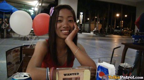 Trike Patrol: Asian teen Lalaine strips and fingers her twat while playing with her tits