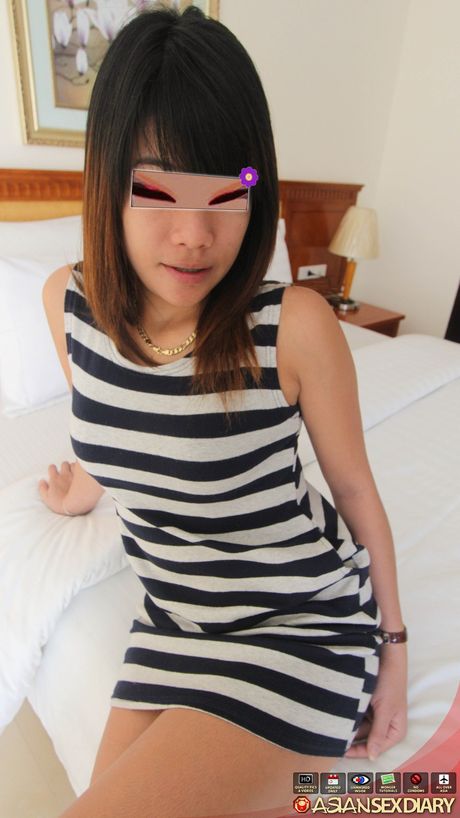 Asian Sex Diary: Asian teen Lexi strips and shows her tiny tits and hairy pussy up close