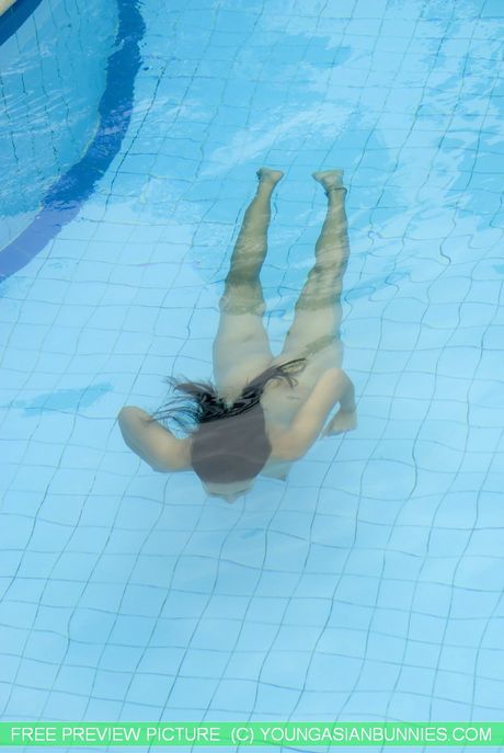 Hot Bunny Promotion: Asian teen Michaela shows her small tits and her hot ass in a pool