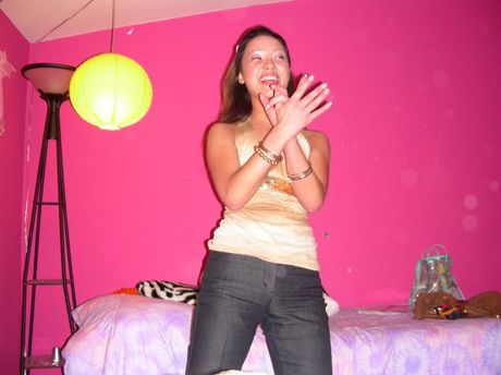Matts Models: Asian teen Miko strips and shows her hot butt and tits in the backyard