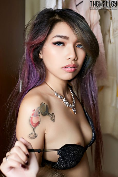 The Black Alley: Asian teen Waratta strips and shows her perfect booty and tits