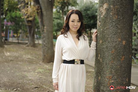 Japan HDV: Asian Yuna Yamami in a white dress is very elegant and attractive.
