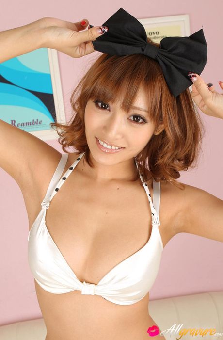 All Gravure: Asuka Kirara Asian with bow in hair shows big hooters in bras