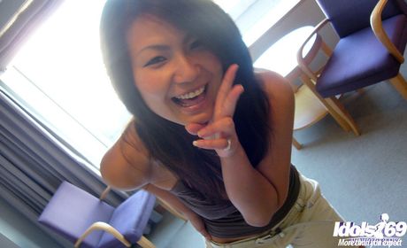 Idols 69: Attractive japanese hottie Asami in shorts posing outside