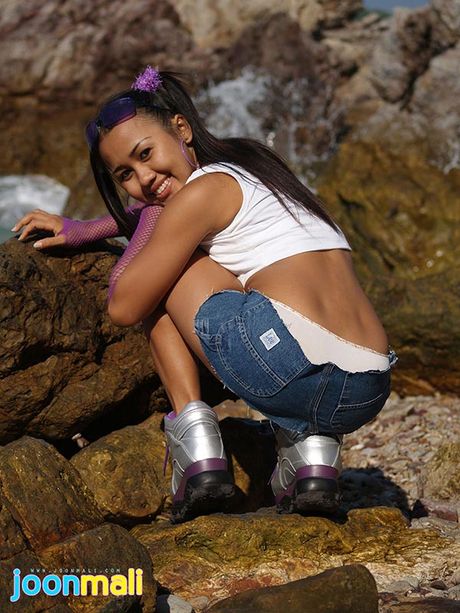 Joon Mali: Barely legal Asian teen shows cameltoe in white panties