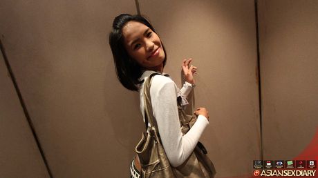 Schoolgirls Asia: Carla in fishnet tights spreads her legs to flash her brown love orifices