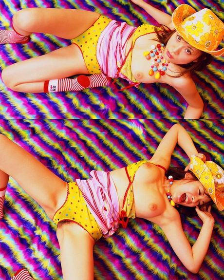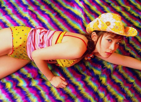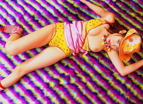 All Gravure: Colorful gravure babe peels down her top and shows off her boobs