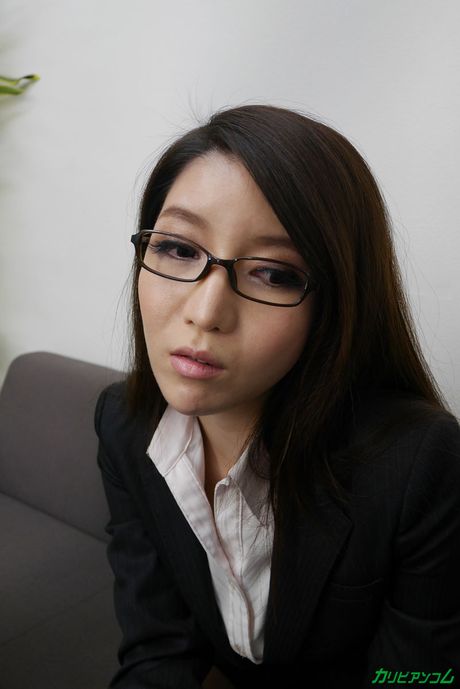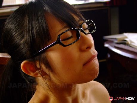 All Gravure: Cute asian hottie seduces in black lingerie and her glasses
