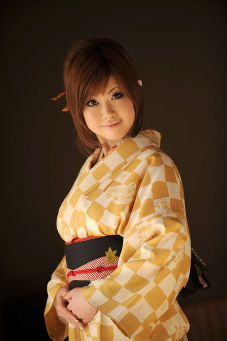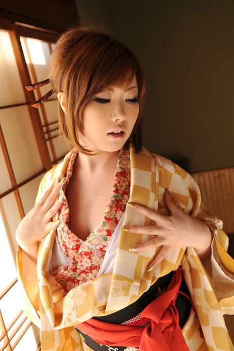 All Gravure: Cute asian model in a yellow kimono showing off her big breasts