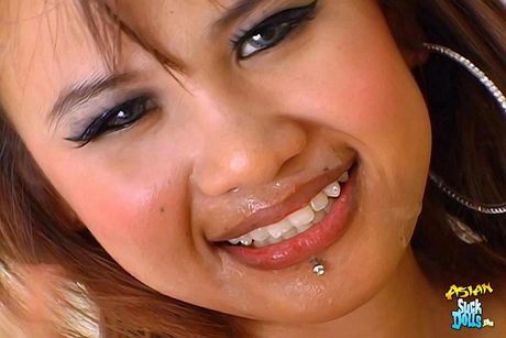 Asian Suck Dolls: Cute barslut sucks cock and gets a huge mouthful of cum