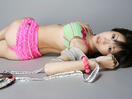 All Gravure: Cute little asian hottie is adorable in pink and green lingerie