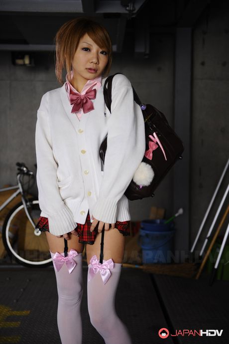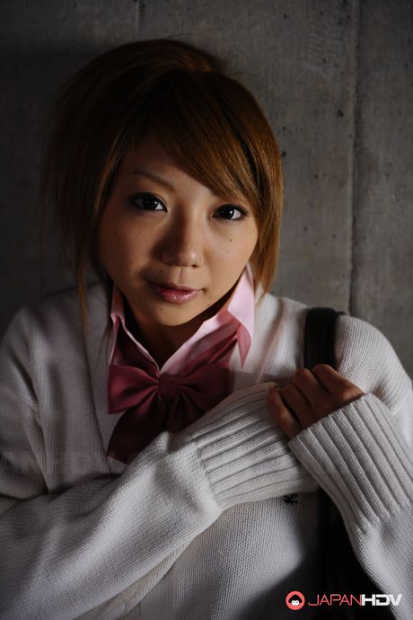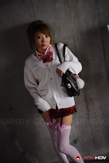 Japan HDV: Cute school girl Rui Hazuki poses in her short uniform in parking lot
