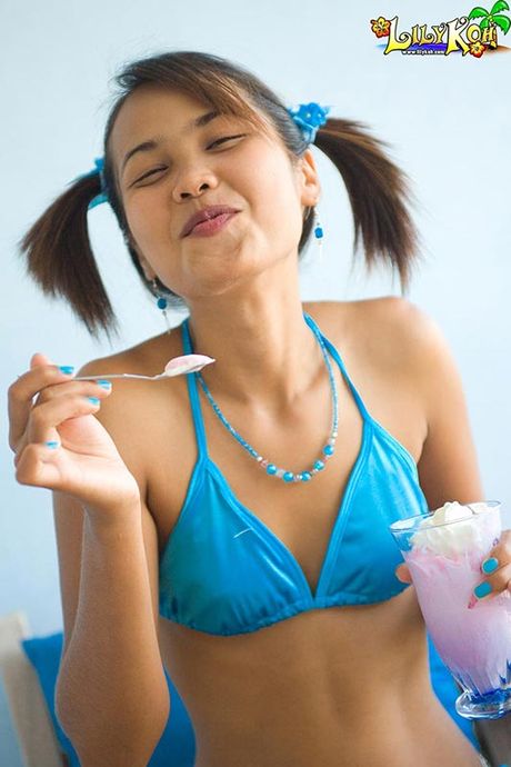 Lily Koh: Delicate Asian Lily licks cream off her soft lips