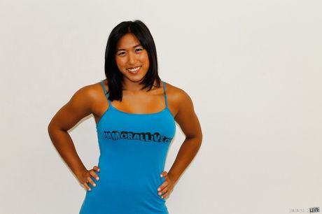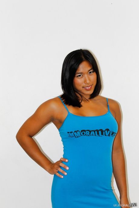 Immoral Live: Delightful asian dark hair cutie Mai Li in nice skirt showing big titties and ass