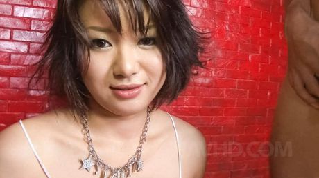 Ferame: Haruka Uchiyama Asian touches cock with her jugs and licks it
