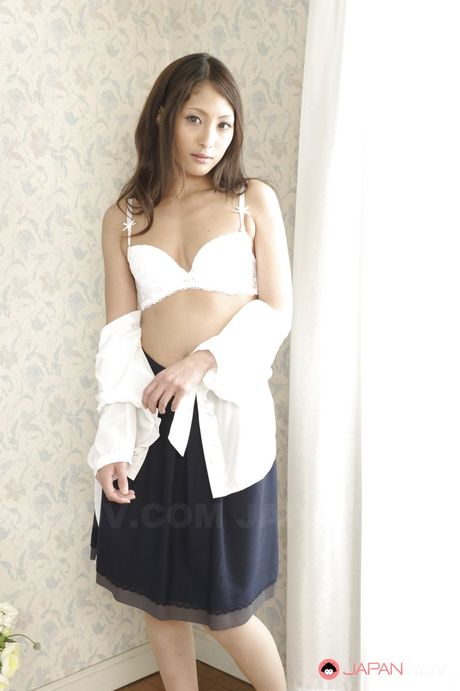 Japan HDV: Hot japanese brunette Aoi Miyama in sexy undies exposing tiny tits and hairy pussy