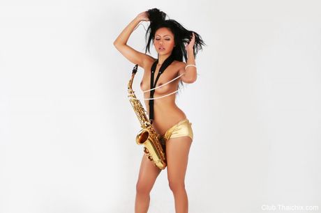 Club Thai Chix: Janice in panties playing the saxophone topless