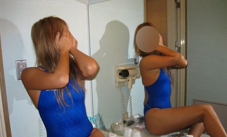 Japan Swimsuit XXX: Japanese amateur chick with small tits strips and displays her body in a solo