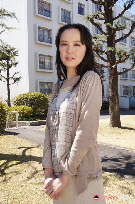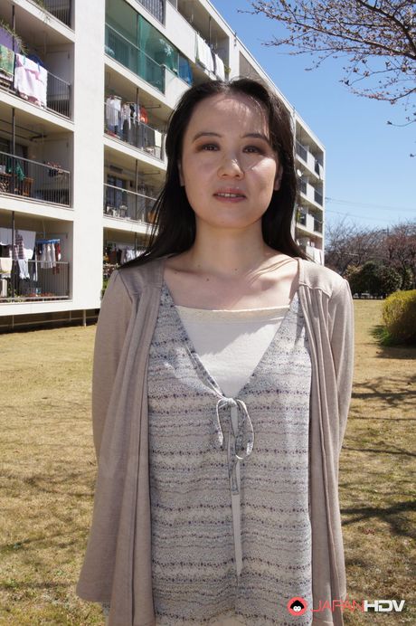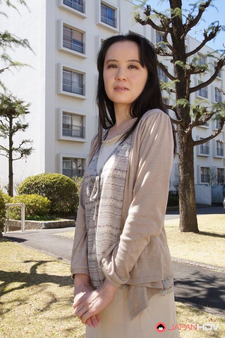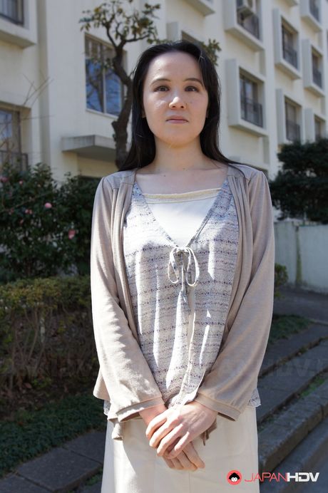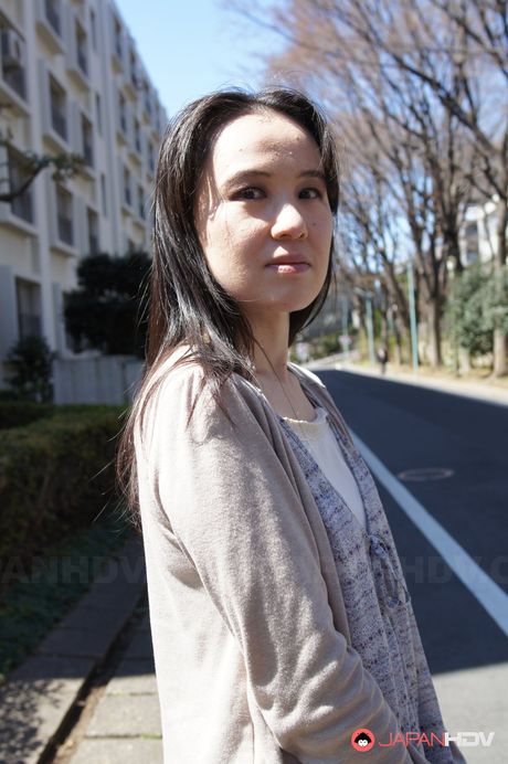 Japan HDV: Junko Nishimura is an Asian lady presenting her new outfit outdoors.