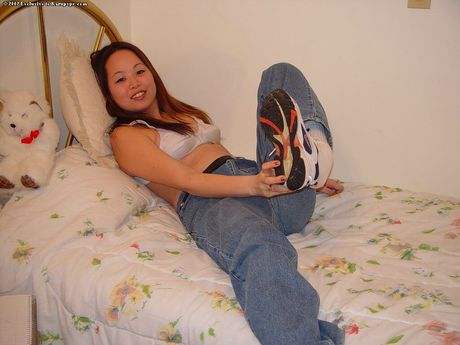 Karups Private Collection: Luscious asian teen China in tight jeans uncovers small tits and puts a toy in her cunt