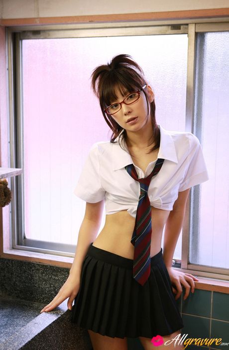 All Gravure: Miu Nakamura Asian in hot school uniform shows ass in blue thong