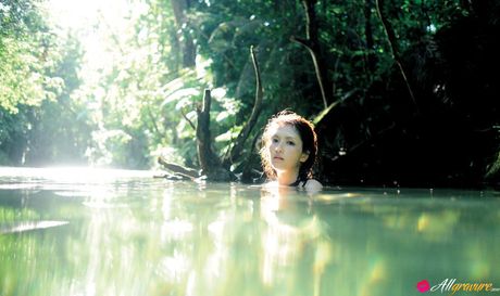 All Gravure: Neo Asian babe in white dress loves feeling her body in water